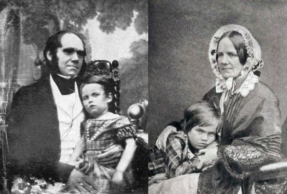 Darwin tinha razão: a endogamia prejudicou a sua linhagem. Ele sempre mostrou uma extrema preocupação com a saúde de todos os seus filhos, fruto da sua união conjugal com uma prima em primeiro grau. Na imagem ao lado, exibimos uma montagem de uma foto de Charles Darwin e o seu filho primogénito William, com a sua mulher, Emma, a abraçar o filho Leonard.